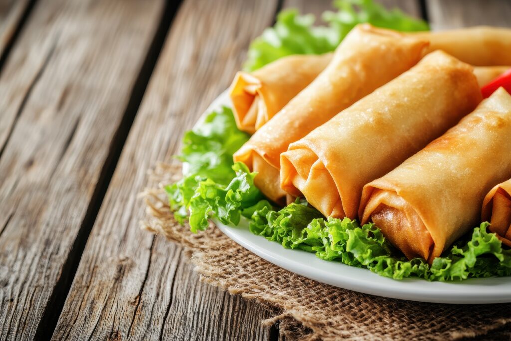 Klassische asiatische Speisen, wie gebratene Nudeln, Reis, oder auch Frühlingsrollen werden angeboten.