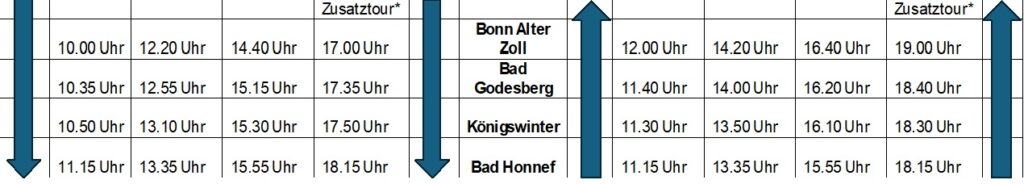 - Einlass in Bonn: jeweils ca. 10 Minuten vor Abfahrt